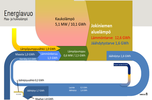 Alueella tutkittiin ratkaisua, jossa lämpöpumput ja kaukolämpö tuottaisivat kahden energiakeskuksen kautta koko alueen lämmityksen. Energiakeskuksille varattiin tilat alueen pysäköintilaitoksiin.